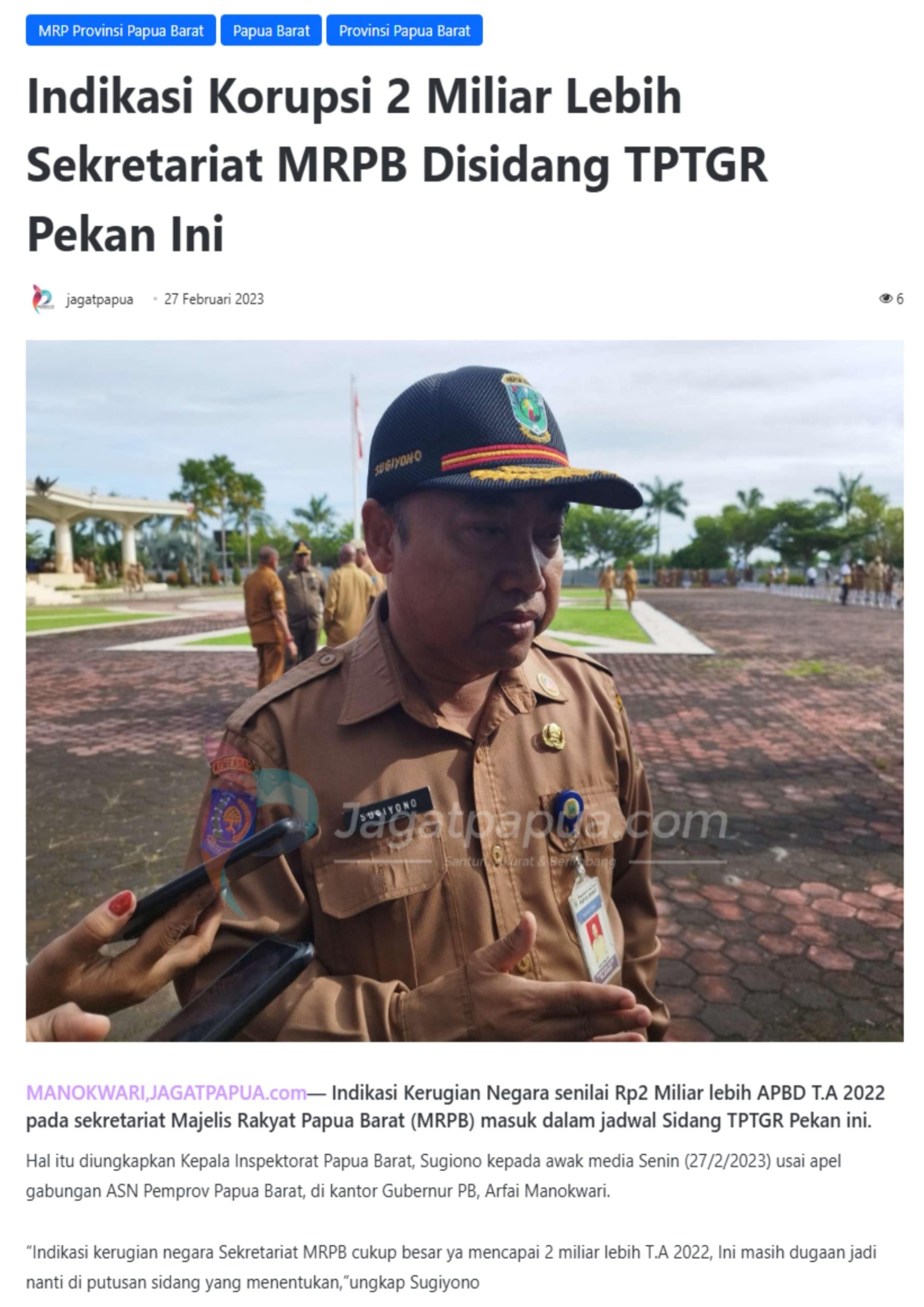 Rekam jejak digital masih dapat kita temukan, bahwa inspektorat Papua Barat akan melakukan sidang TPTGR terkait temua BPK Provinsi Papua Barat, namun hingga saat ini tidak ditemukan lagi kelanjutan informasi terkait itu.